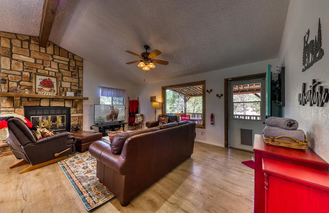 During the stay at Whispering Woods: Relaxation At Its Finest Villa, guests can indulge in a Jacuzzi or visit Ruidoso Winter Park, located 10 minutes away by car. Located 10 minutes by car from Monjeau Lookout, the 2-bedroom villa provides Wi-Fi and a car park.